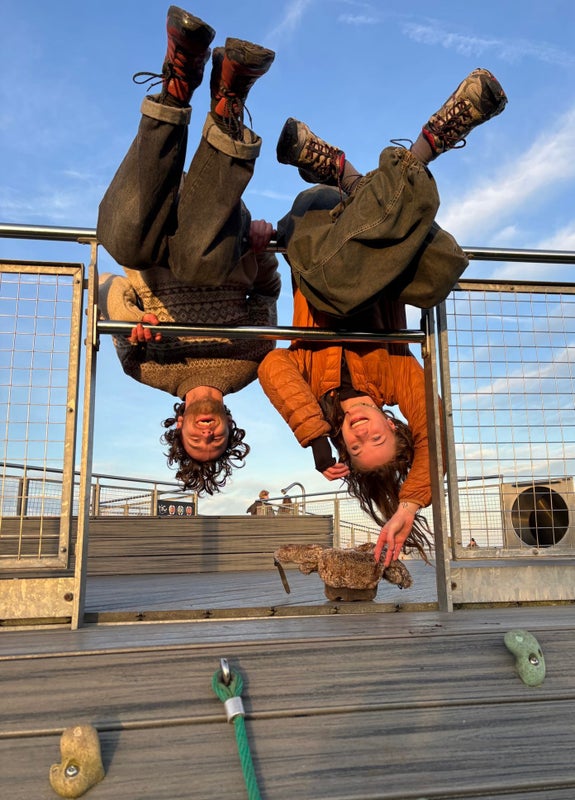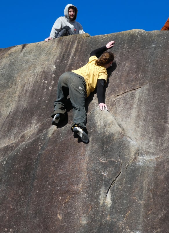We are a very friendly, chill and respectful couple who will happily come give you a spot or belay!