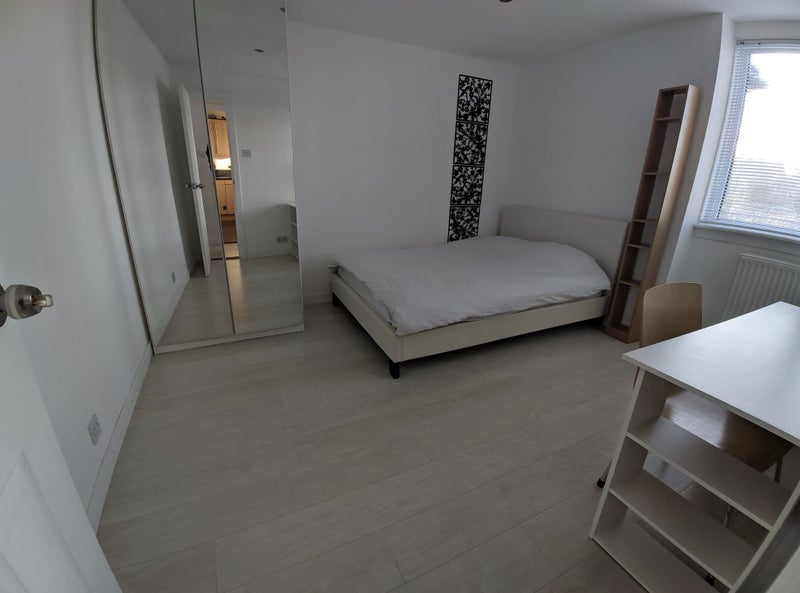 Accommodation comprises: entrance hallway, furnished bright double bedroom (TV, wardrobe, drawers, desk, chair). Spacious kitchen with breakfast bar and modern cons. Bathroom with large walk-in shower. Gas central heating, double glazed windows.