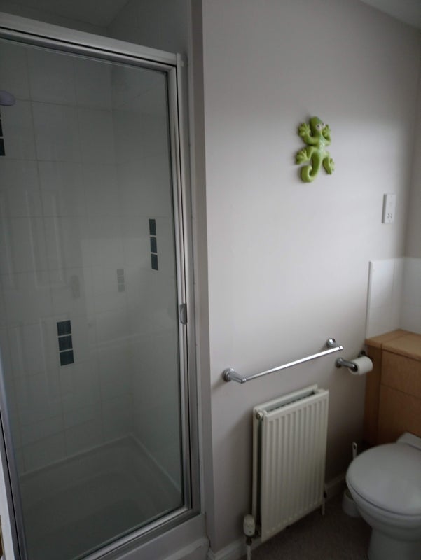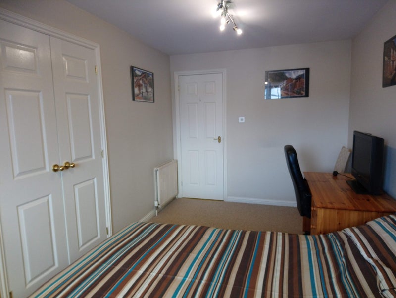 Spacious room with double bed, large wardrobe with good storage. Desk with leather chair.