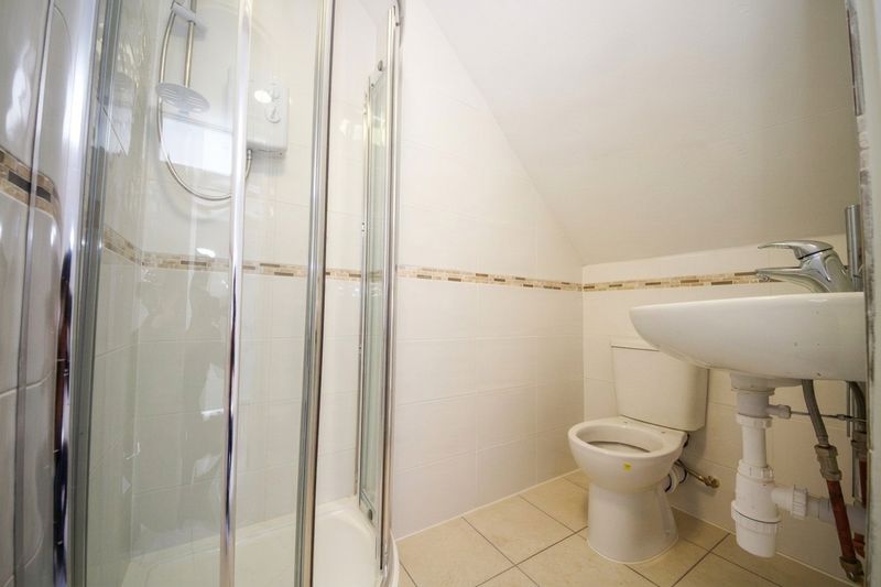 Private en-suite bathroom with shower, toilet, and basin