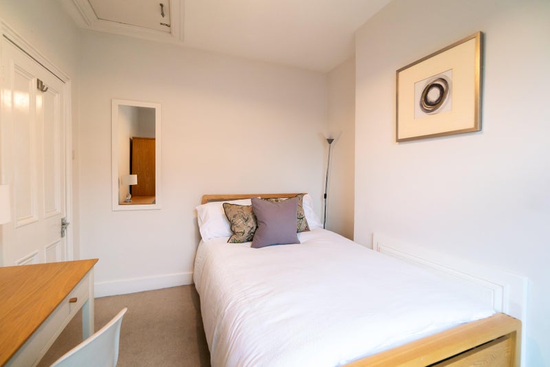 Room 4 😀 - A beautiful first floor room for £650pcm available immediately, fully furnished with a double bed & under bed storage, bedside table with a lamp, a large wardrobe and a desk & chair. This room shares a shower room with three other housemates.