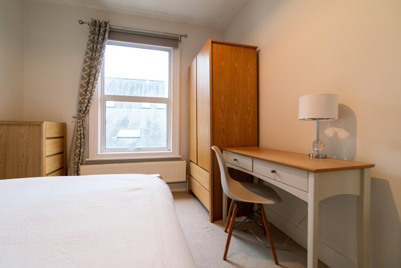 Room 2 😀 - A beautiful first floor room for £625pcm available immediately, fully furnished with a double bed & under bed storage, bedside table with a lamp, a large wardrobe and a desk & chair. This room shares a shower room with three other housemates.