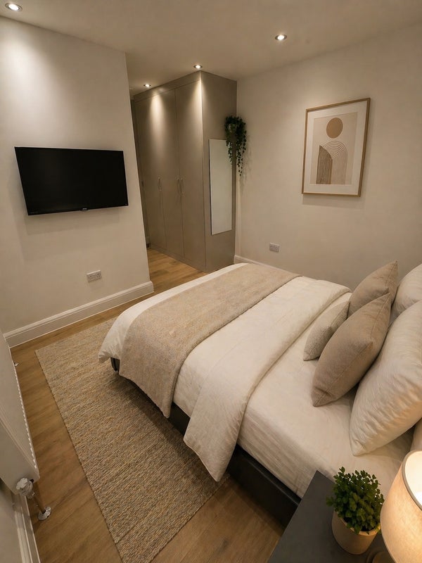 • Each room includes a double ottoman storage bed, fully fitted wardrobe, and bedside tables. Desks available on request for those who work or study from home.