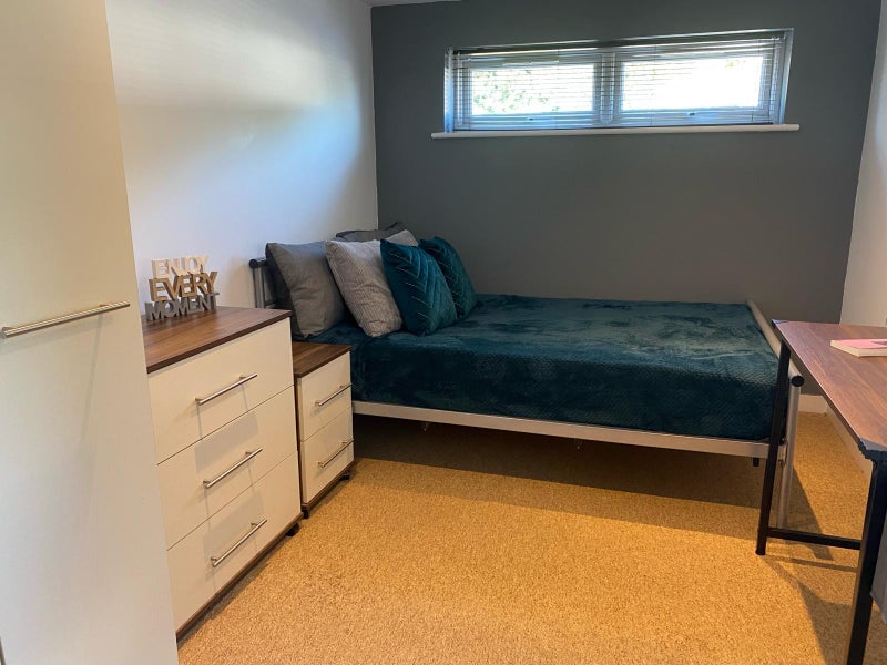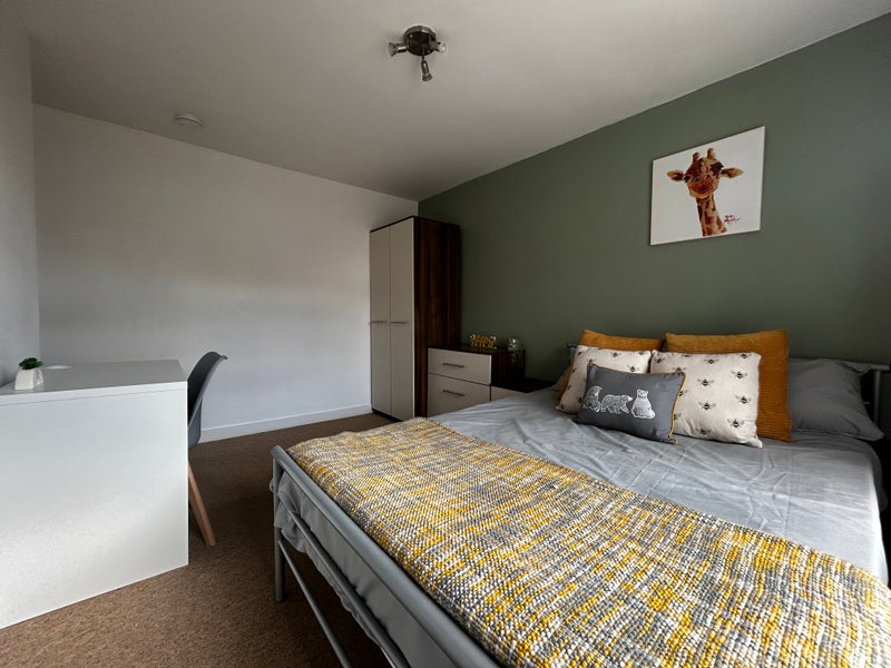 🛏️Fully furnished bedrooms; double bed, wardrobe, chest of drawers, bedside table, desk and chair.