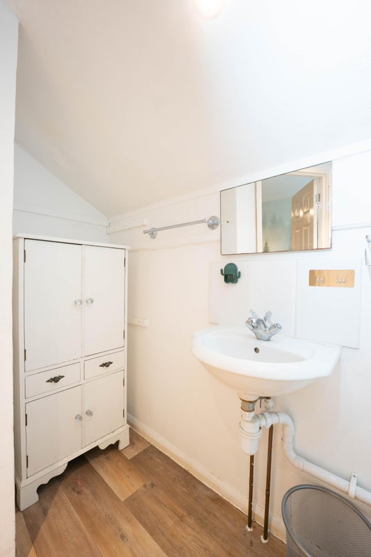 --- En-suite loft double room 6 (second floor): 4.75m x 3.73max (15'7x12'3), cleverly converted loft space with built-in wardrobe with plenty of extra storage. Two large skylight windows makes the room feel extremely bright and spacious. Pine double bed, 6-drawer solid oak chest of drawers from the Habitat Hana range, oak desk and a large swivel love chair, perfect for a lazy afternoon. Has its own bathroom with a bath, WC and sink, directly beneath a bright skylight window. This room is taken.