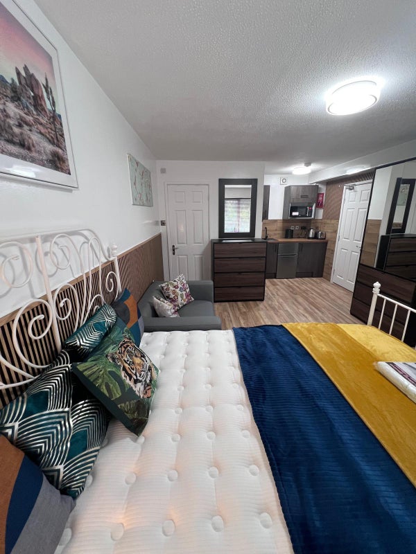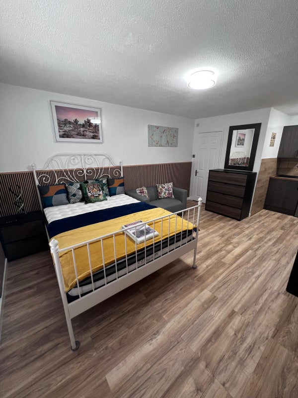 Beautifully decorated house offers studio rooms and a double room. 2 mins walk to Tesco, cash machines, Kebab shop, take aways, pharmacy and bus stop. Excellent bus and road link to the city. Lovely quiet location with plenty of off street parking.