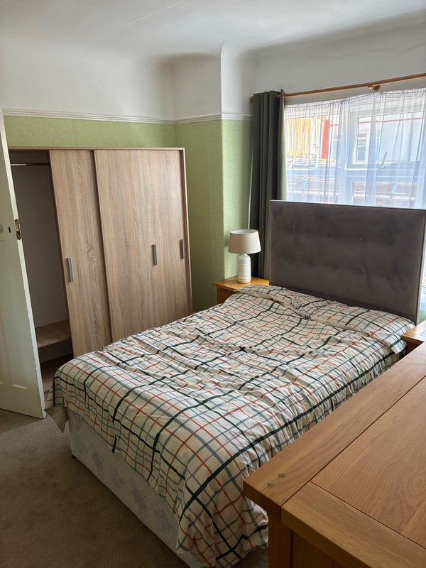 Light airy double room with double bed wardrobe, bedside cabinets, etc in a nice middle class area suitable for professionals parking available.