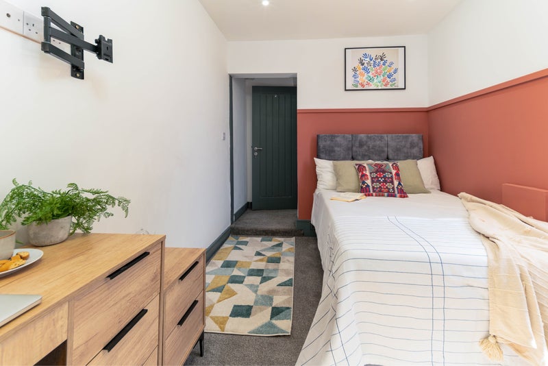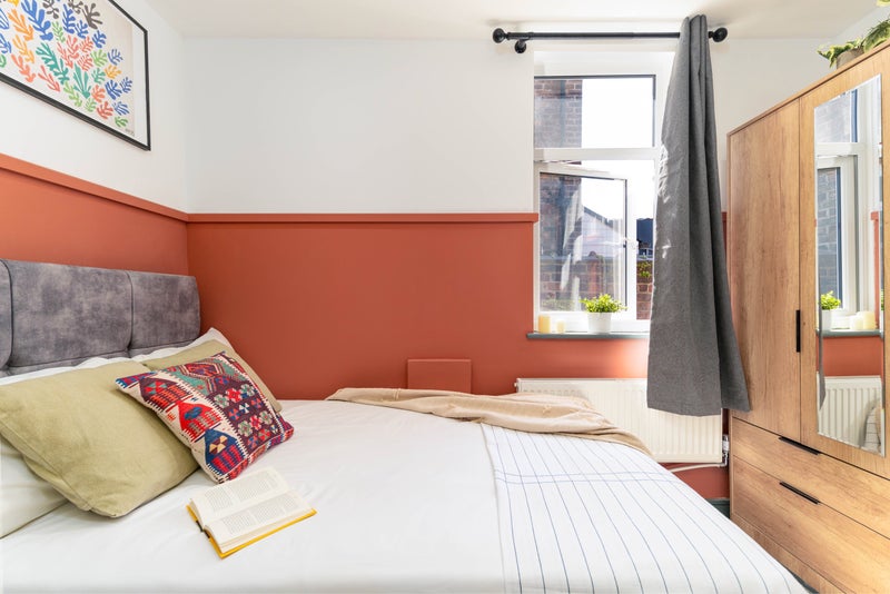 A bright, stylish space with a double bed, wardrobe, desk, and bedside table - everything you need to move straight in.