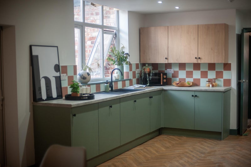 A bright, stylish space with a double bed, wardrobe, desk, and bedside table - everything you need to move in straight away. Bonus? Our rooms are acoustically treated, protecting your peace and quiet!