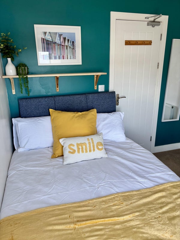 This room is gorgeously decorated, modern and fresh. There's a comfortable double bed, underbed storage, wardrobe rail, SMART TV LAN internet with personal password, so no lagging when everyone is watching Netflix!