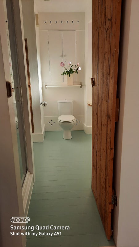 Beautiful light and airy studio flat. White walls and wooden floorboards. Comes with own kitchen and shower room. Large storage cupboard.