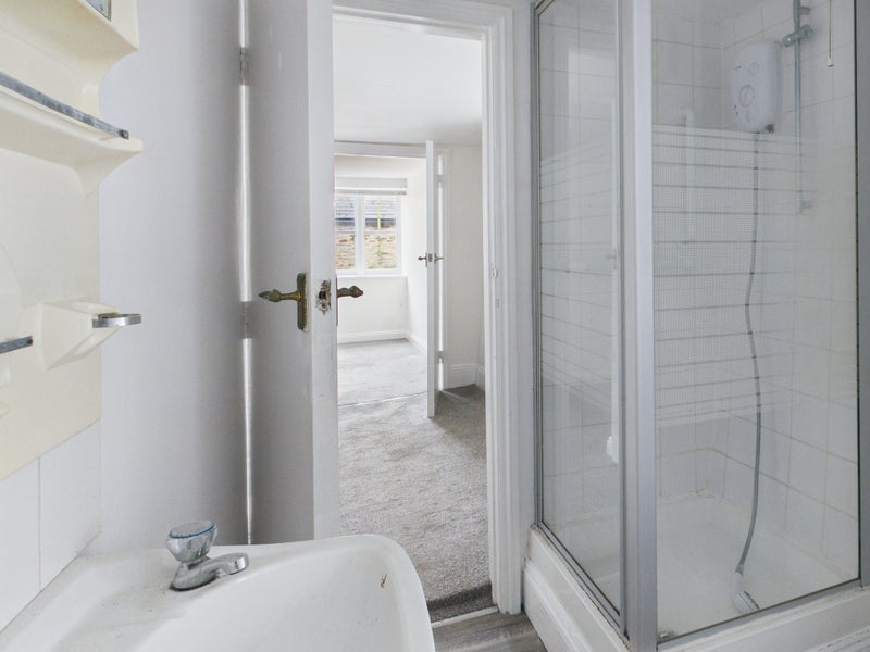 Leading off the bedroom is the en-suite shower room, fitted with a shower enclosure, wash hand basin and WC. The space is neatly arranged and finished with easy-care flooring, providing a convenient and modern addition to the property.