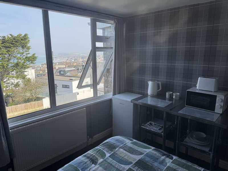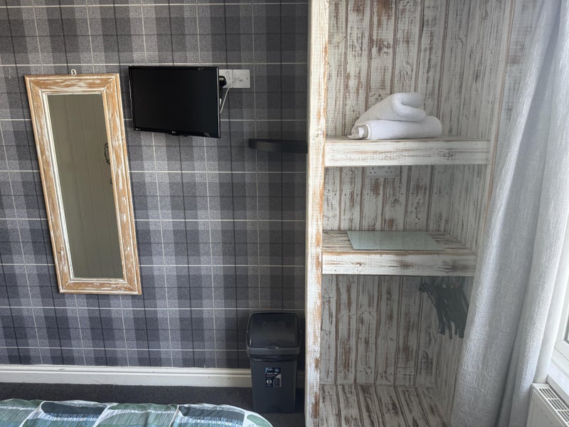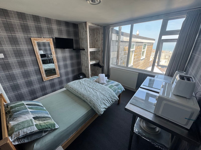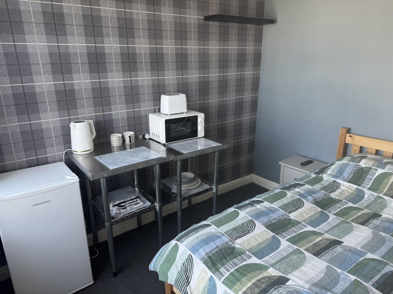 Nice size room it’s a single bed with tv kettle toaster microwave fridge great for anyone working in the area it also has lovely veiws
