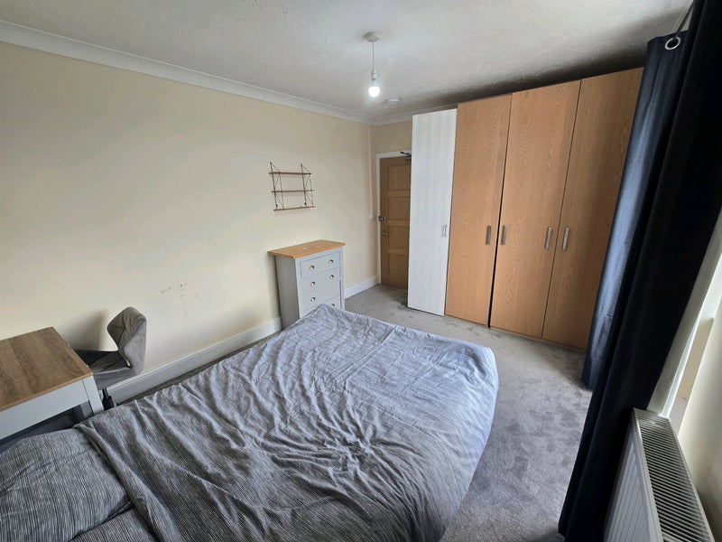 A quite room at the back of the house overlooking the garden is this large double bedroom, the room features a large built in wardrobe for extra storage.