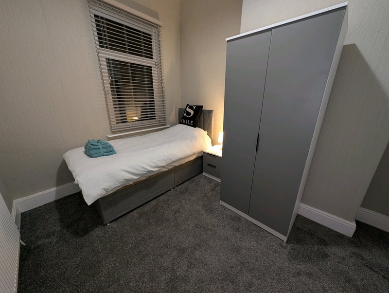 The rooms will come with full linen as well as a tea and coffee making station kettle and mugs. A double wardrobe and bedside table and lamp, as well as a 32 inch Smart TV in each bedroom plus a 42 inch smart TV in the communal lounge area.