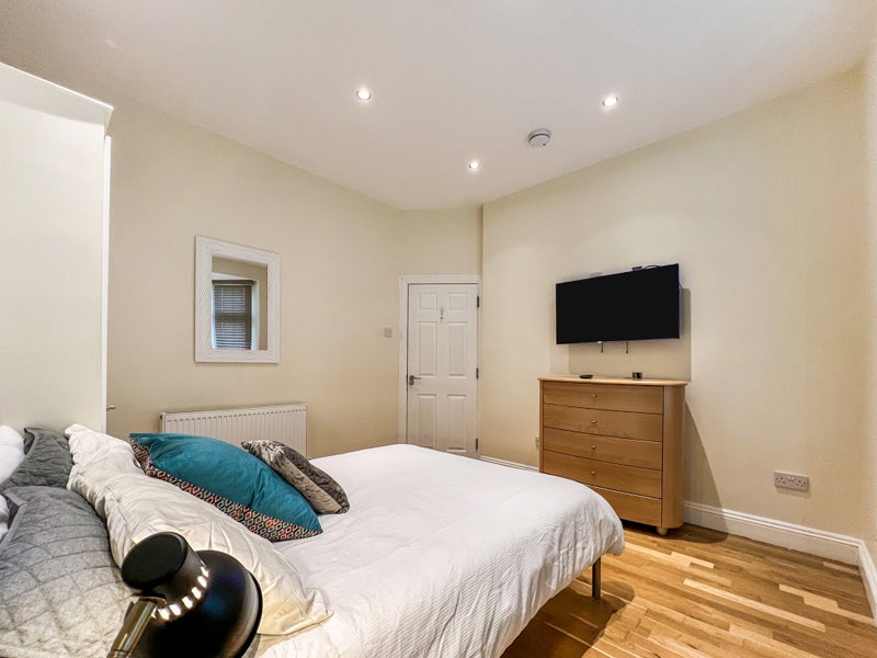Bedrooms: Bedrooms 1, 2 & 3 are located on the ground floor, bedrooms 4, 5, 6, 7 & 8 are located on the first floor, and are all spacious double bedrooms. They have all been decorated throughout with freshly painted walls in contemporary modern colours and beautiful hardwood flooring. Large double glazed windows allows for ample natural light. The rooms are all furnished with a double bed, a built in wardrobe, a tall chest of drawers & bedside chest complete with bedside lamp. A wall hung flat screen TV is included in each bedroom directly connected to the internet, there are also connections for things like Xbox, Play Station Etc. All rooms have ample wall sockets.