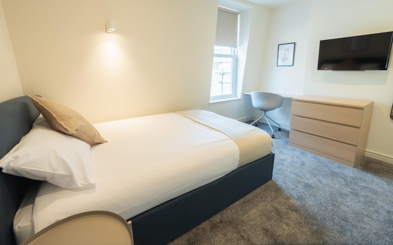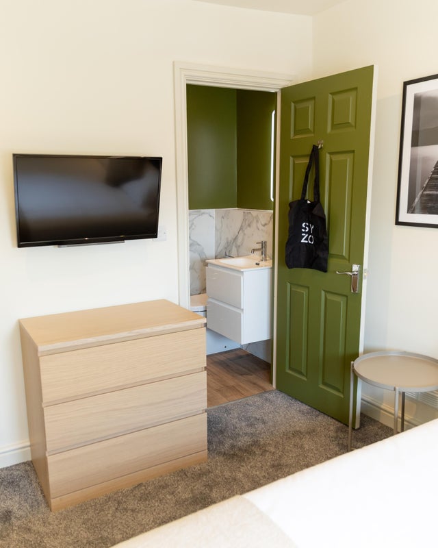 Both room's 3 and 7 are bright, apcious, modern, fully furnished rooms, that boasts a double bed, wall-mounted television, storage, desk space, recently installed carpets. They come with a fantastic, modern en-suite with a large shower, toilet, heated mirror, towel radiator, basin and vanity unit.