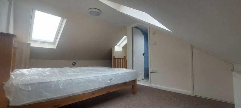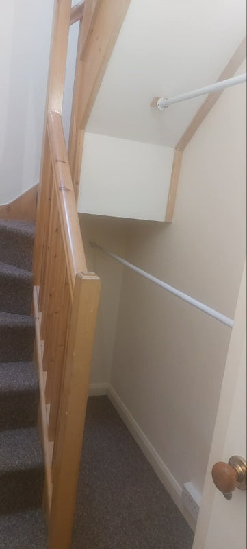The room is part furnished, a double bed and mattress are provided and the room has plenty of hanging space under the stairs and storage space in the room.