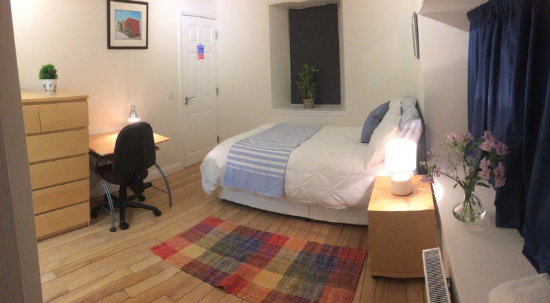 Double ensuite room in recently refurbished cottage near town centre, on same side of town centre as Royal Infirmary. Rent includes housebills. Large private car park, bus stop at foot of drive. Ensuite has shower cubicle, toilet and basin. The cottage is well-maintained, peaceful, warm, clean and comfortable. Housemates are quiet and considerate professionals. Double glazing and central heating. 5 minutes walk to town centre and short bus-trip to DGRI.