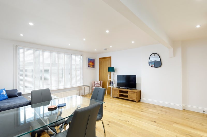 As you enter through the private front door, you'll head up the stairs to find yourself in the spacious hallway with the bedrooms on your right. The open plan living area features a double sofa and TV. There is also a large modern bathroom with bath, shower and heated towel rail.