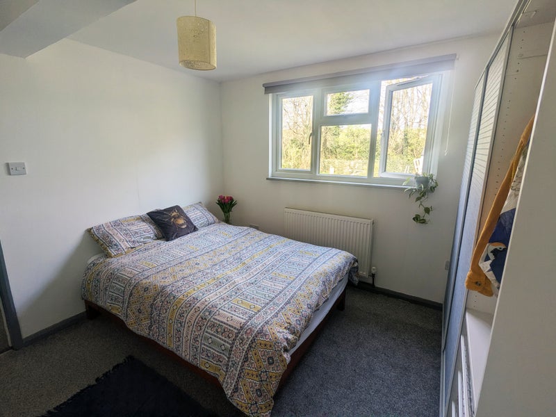 It is a spacious double bedroom with views over the garden. The room comes furnished with a double bed, mattress and large wardrobe, with space for additional furniture if needed.