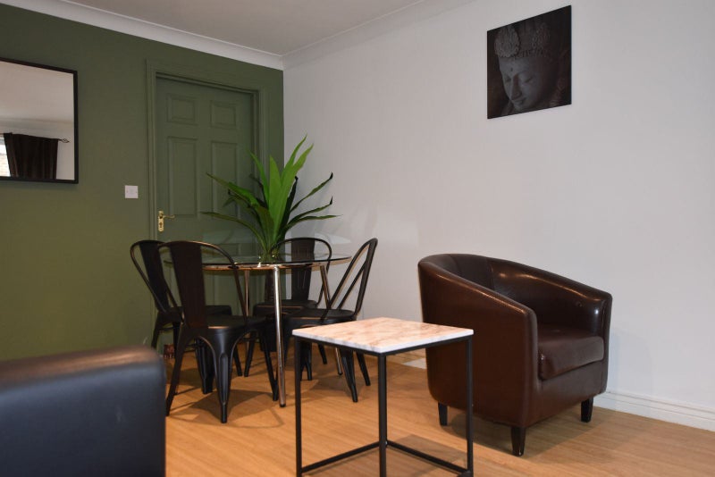Ideal for access to the Hospital - just a 10 min walk. There's an Asda, gym and the train station 5 minutes walk away, or even the Town Centre is just a 15 minute walk or a short bus journey. The area is safe and quiet.