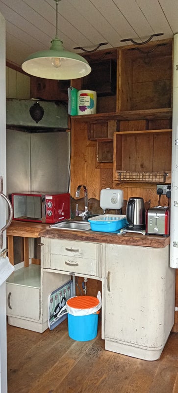 This is better than just a room. You have the whole wagon to yourself. Set in an acre of ground. Overlooking farmer's fields. Showman's wagon is the living area. Has seating area, and small kitchen area, small fridge, larger fridge in the garage. Shepherd's hut is the ensuite with electric shower and oil filled radiator. On mains drainage. TV, broadband, water included only pay electricity. Parking available next to wagon. No pets, no smoking. Single occupancy only. Message me for more information.