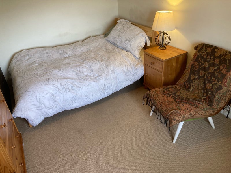 The room is available fully furnished. Shared use of lounge, kitchen and bathroom. Wifi, with good broadband speeds. Bills generally included but may charge extra for heating oil ( if oil price remains high) or high electric user. Full use of kitchen utensils, pots, pans, spices, oven/airfryer, washing machine, fridge freezer etc. References maybe asked for.