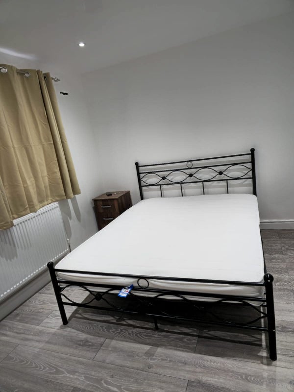 Bright and spacious double bedroom with king size bed in 2nd floor garden facing, End of terraced house, available from 18th April 2026 with shared bathrooms & kitchen in a newly refurbished home @ £700 per month for single professional occupant & £850 per month for professional couple including all bills and fully furnished with 3 door wardrobes, bed side cabinets and wall cabinet (as shown in picture) allowing enough storage space.