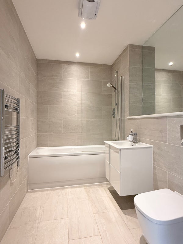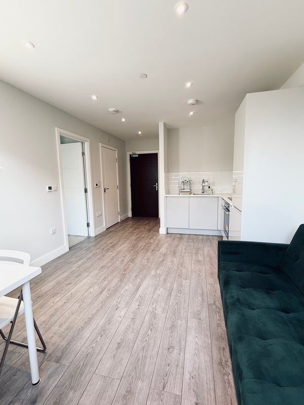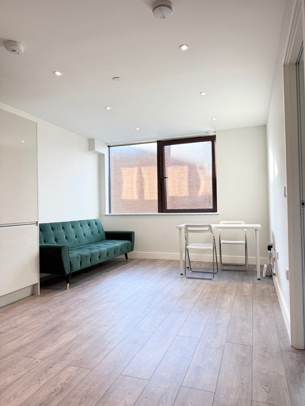 The flat sits on the third floor of a well-kept seven-storey building with a lift. It’s a recent office-to-residential conversion (around five years old), so everything feels contemporary and looks close to new. There’s a cycle store on every floor and an easily accessed bin store. The building community is friendly, with many young couples and families.