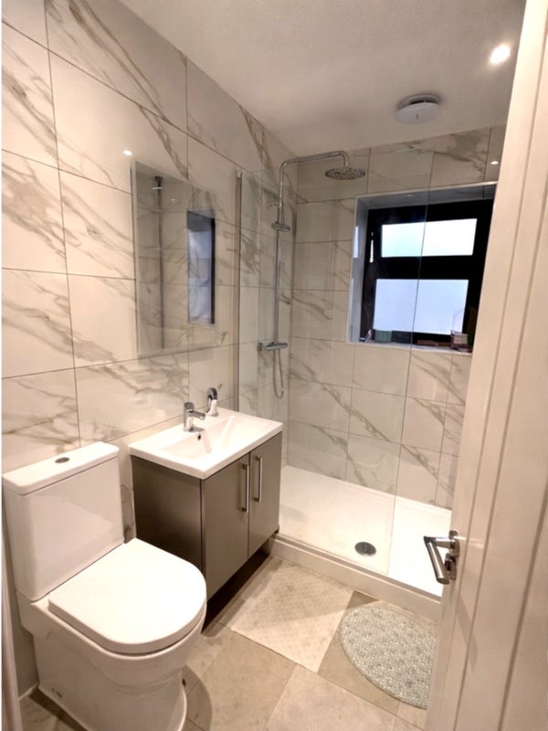 Every room has its own private en-suite shower room, fully tiled with marble-effect wall tiles and porcelain floor tiles. Bathrooms feature: