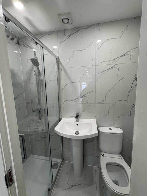 Self-contained studio flat available with private entrance and parking. Features an ensuite shower and toilet, plus a compact open-plan kitchen with gas cooker. A small fridge/freezer and washing machine are included, and the apartment can also be furnished upon request.