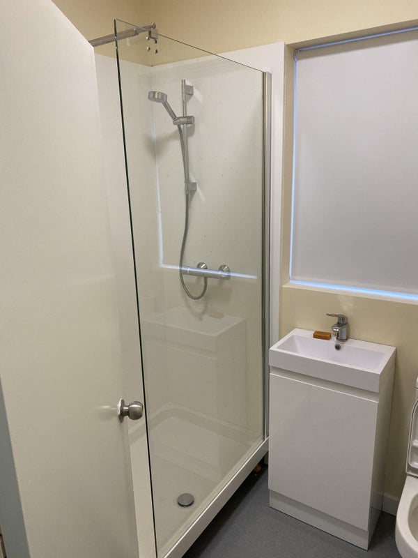 Spacious top-floor room with a private ensuite shower and bathroom, plus double bed and wardrobe.