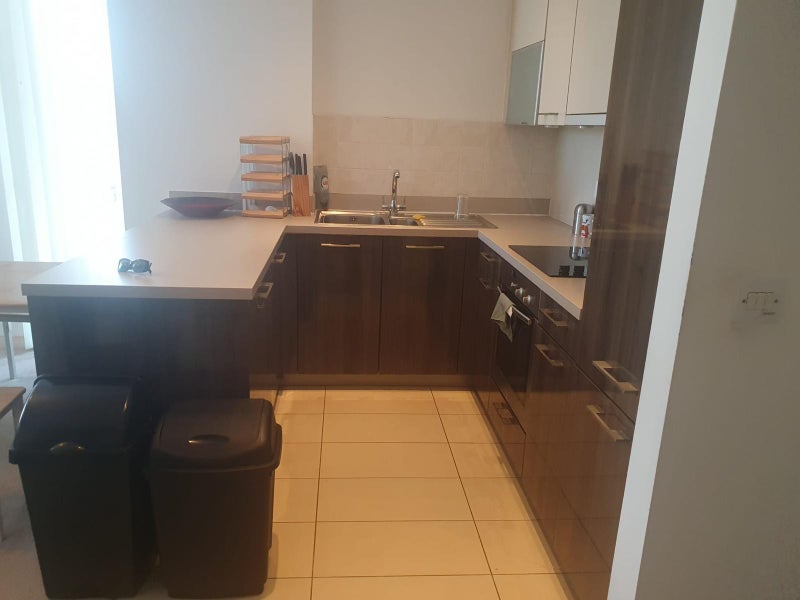 Double room with en-suite available from start of June. 8th floor flat with wrap-around balcony with amenities including washer/dryer and dishwasher. Photos are from our viewing so it looks a little more lived-in currently!