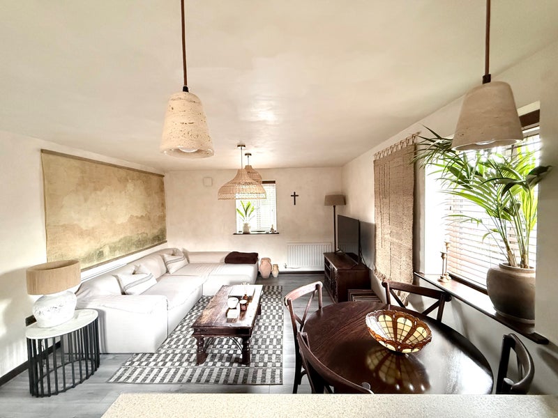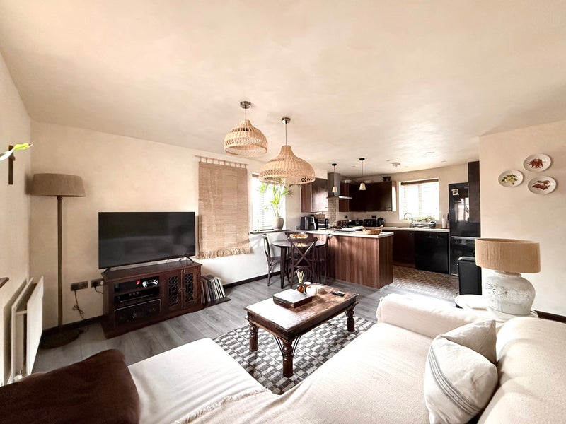 - Amenities – Large fridge freezer, washer dryer, dishwasher, fully equipped kitchen, dining table, L sofa, smart TV, smart lights.