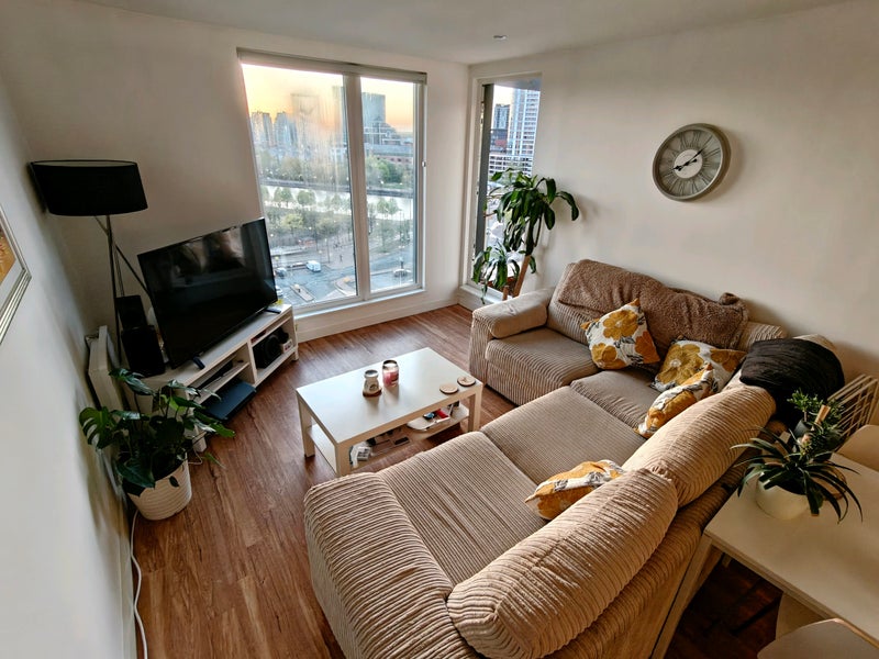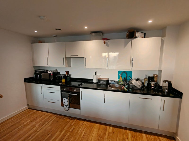 The flat has a balcony with a fantastic view over the water, bright open plan kitchen/living room and 2 toilets. (I have an ensuite effectivly making the other toilet yours). The flat also includes a gym, which for an apartment gym is actually very good.