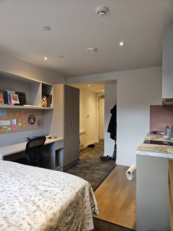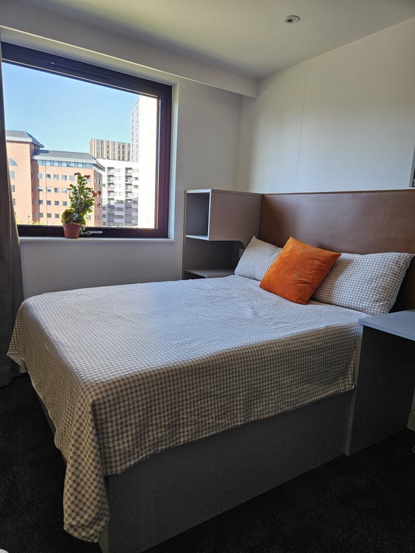 - Fully Furnished: Double bed, study area, hob, fridge/freezer, closet, oven