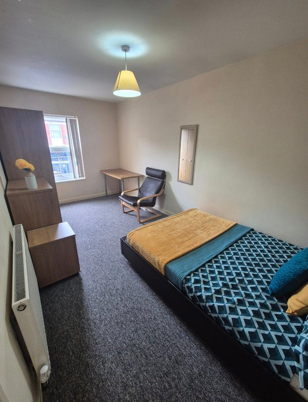 Double room availabale in town centre which shares a kitchen and two brand new refurbished shower rooms with 3 other people.