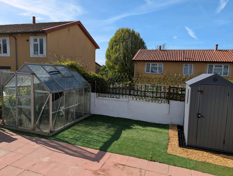 Parking is a big plus here — there’s a private driveway with space for 2–3 cars. The garden is currently basic/low-maintenance, so no gardening expectations.