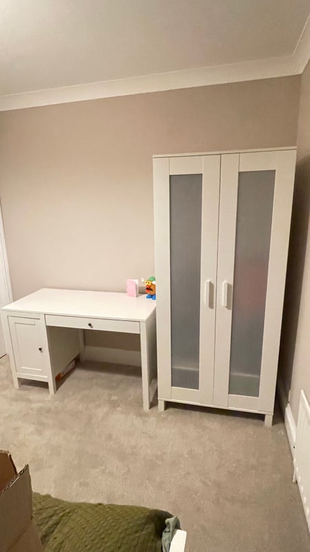 Recently renovated household and furnished double bedroom with bed, desk and wardrobe. South facing so it gets loads of natural light! Pictures were taken at night so doesn’t do it justice. It’s freshly painted with new carpets!