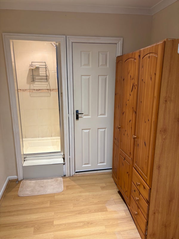 Double room with own ensuite shower, access to shared WC kitchen and garden. Currently furnished with a bed, wardrobe, dressing table. This is £625
