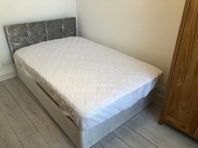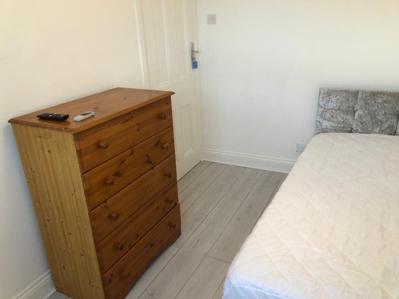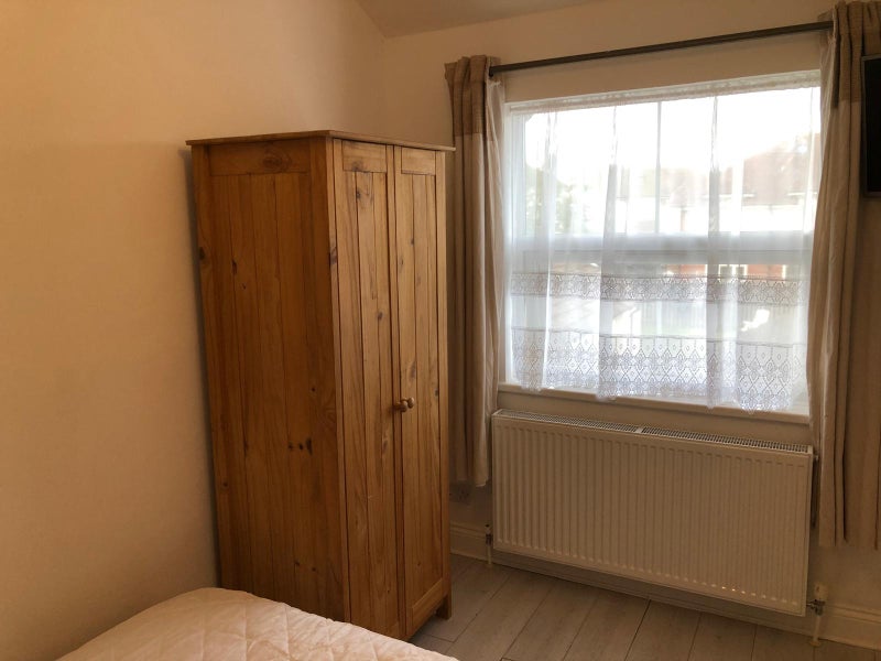 Single room available in a large Victorian house. The room includes a wardrobe, chest of drawers, double bed, and TV. Shared kitchen and bathroom, with internet included.