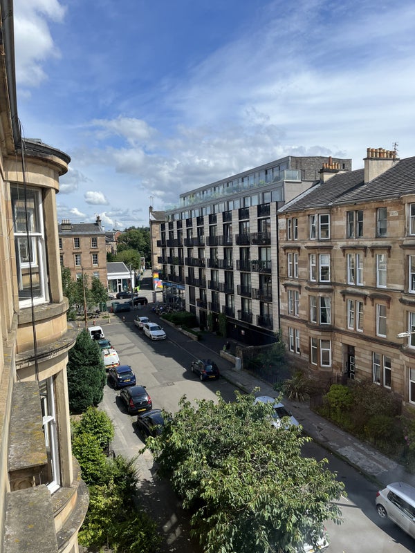 Room has a double bed, shelves and wardrobe, large chest of drawer unit in hallway if needed. Flat has been recently renovated. Bathroom has power shower, laundry (Bosch washing machine and drier); dining kitchen has table and chairs, coffee machine and dishwasher. Flat is a few minutes from Kelvingrove Park and 5 -10 mins from Glasgow university, near the River Kelvin for walks and easy to walk to Byres Road or city centre.