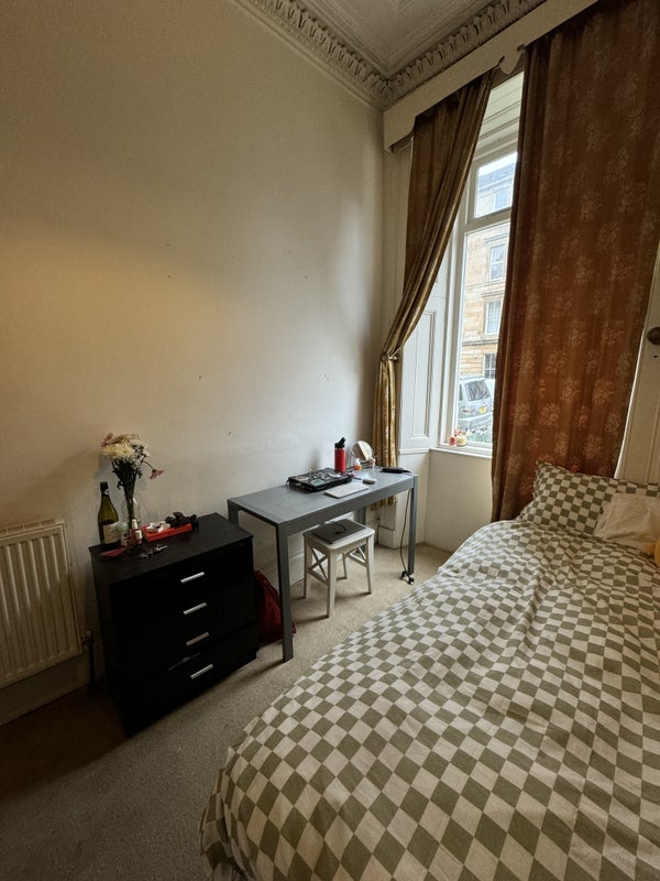 Hello, we have a small double room available from the first week of May in Rupert Street, Glasgow (Woodlands) G4.