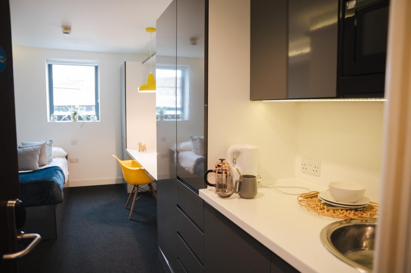 If you’re looking for homely student accommodation in Lancaster, then Damside might be the best choice you can make. Offering 79 beautiful studios with warm interiors, this property is a central point for many universities, reaching The University of Cumbria in 19 minutes and can commute to Lancaster University in 15 minutes. This stunning standard studio is all-inclusive of utility bills and Wi-Fi throughout the building, and has a free on-site gym and games area.