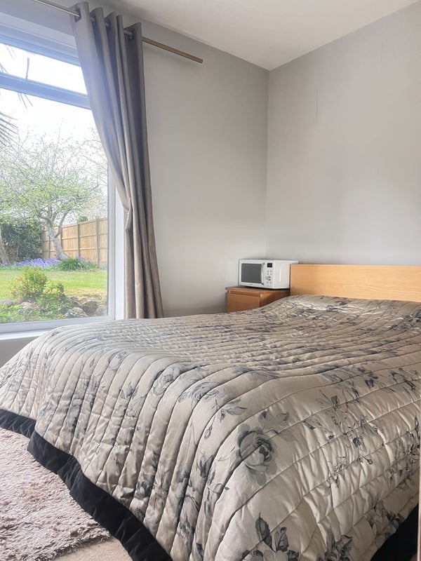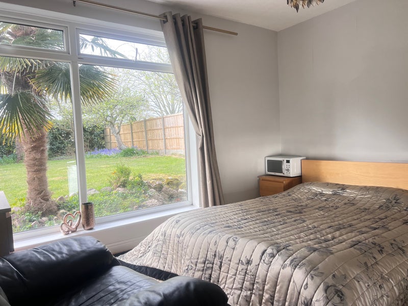 The available bedroom itself has a KS bed NEW memory foam , large windows with a desk overlooking the garden, huge wardrobe and a chest of drawers