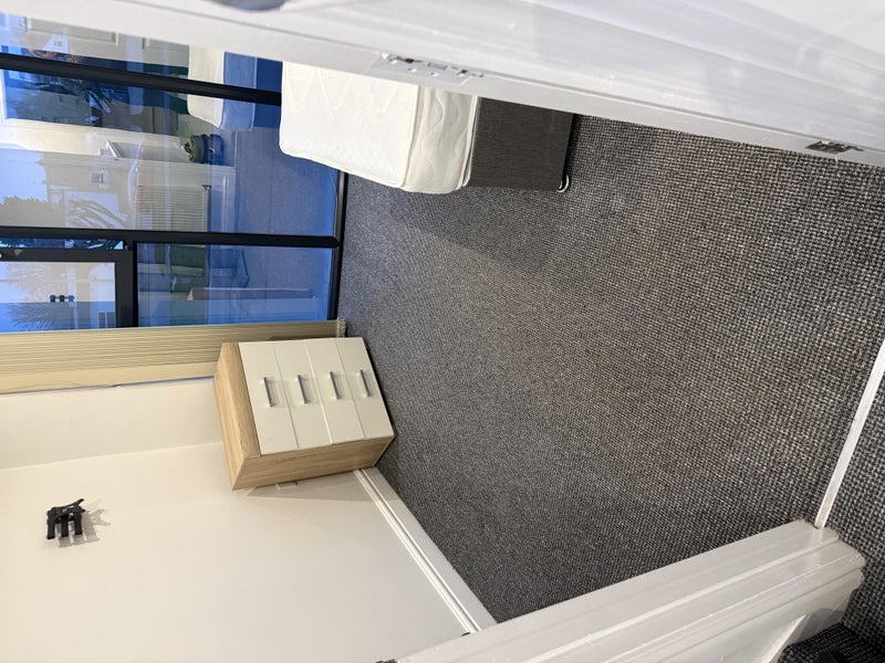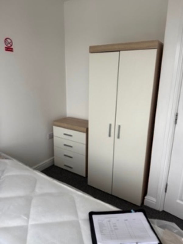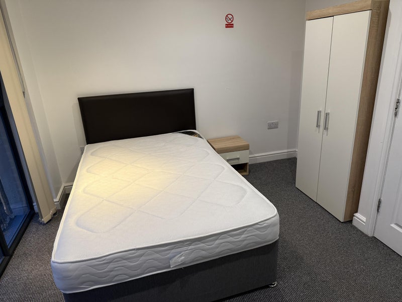 1st floor double bedroom located at the front of the property with a Large floor to ceiling window with lots of light. Fully furnished.