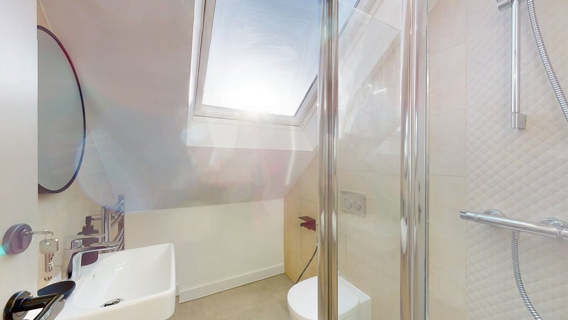 This studio also boasts wooden floor throughout and brand-new double-glazed windows. Washing machine is in the communal area.