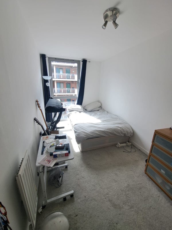 The flat: It is a double room and south facing. It can fit a desk, however it wouldn’t be suited to someone who works from home full-time. There is a modern joint kitchen/living room and a little balcony we use mainly for socialising and drying clothes with a great view of east London. It is really well connected with a 10-15 minute walk to Aldgate, Whitechapel and Shadwell.