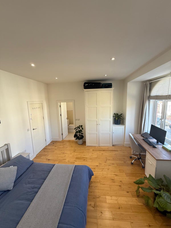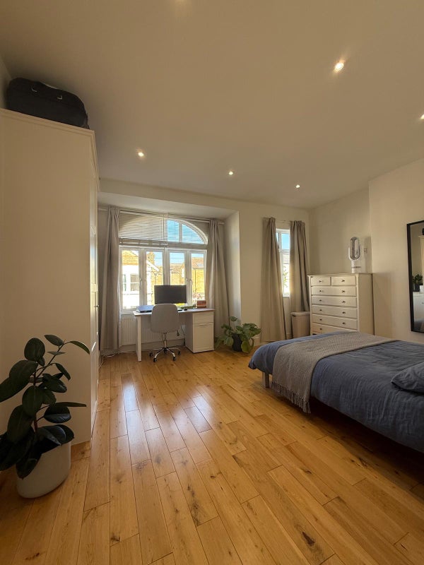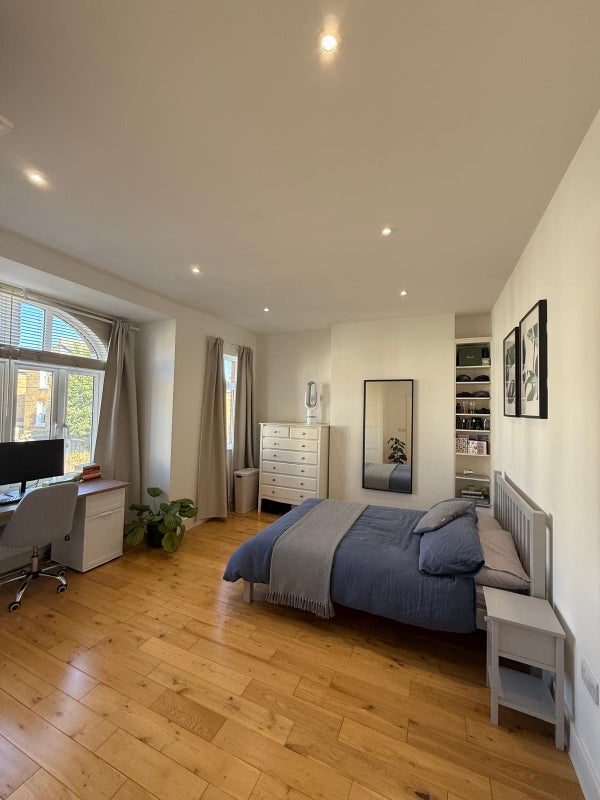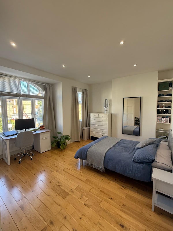 The available room is a spacious double room on the first floor, filled with natural light and with space for a desk to work from home.